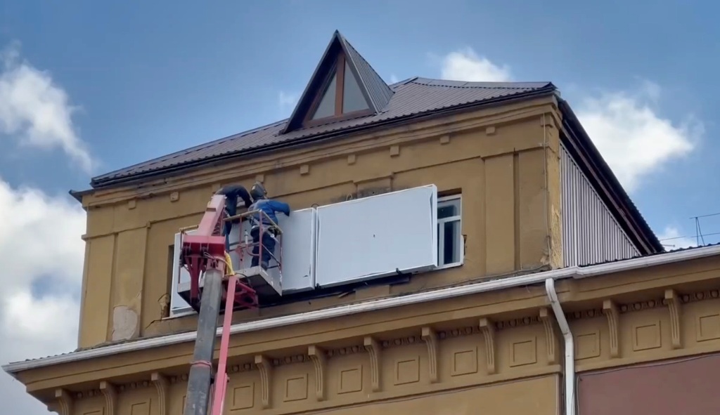 У здания администрации Энгельсского района вчера, 9 апреля, работала монтажная вышка. На угловую башенку исторического здания, где ранее размещались органы власти Автономной республики немцев Поволжья, установили большие цифровые часы.