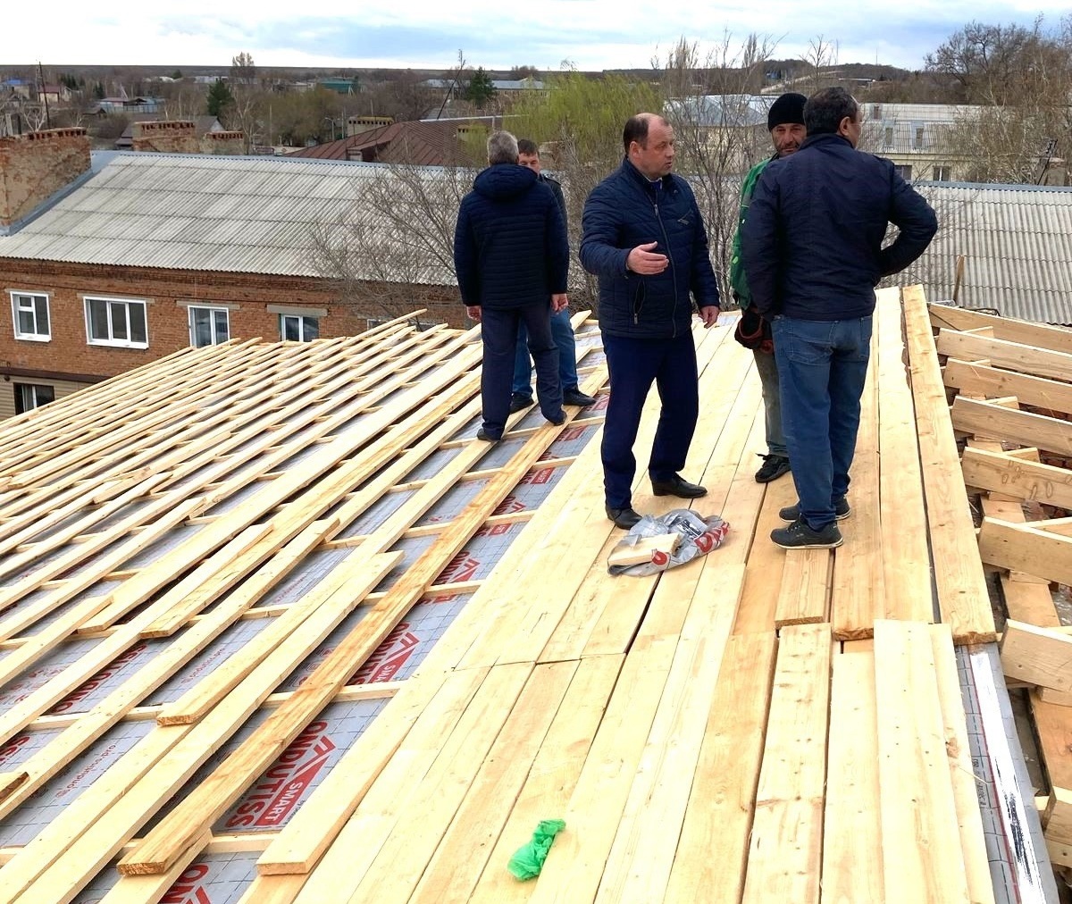 Глава Ивантеевского района Василий Басов постоянно лично проверяет ход работ. Вместе с заместителем по строительству Юрием Савенковым и начальником отдела культуры и кино Валентиной Пекановой проводятся регулярные встречи с представителями стройконтроля иподрядчика. Так, в ходе очередного визита на объект глава района забрался на крышу здания без какой-либо страховки. Погода позволяет уже сейчас вести реконструкцию кровли. Старое покрытие полностью сняли, уложили изоляцию, возводят новый деревянный каркас. За полувековую свою жизнь масштабная реконструкция кровли проводится на ЦДК третий раз.