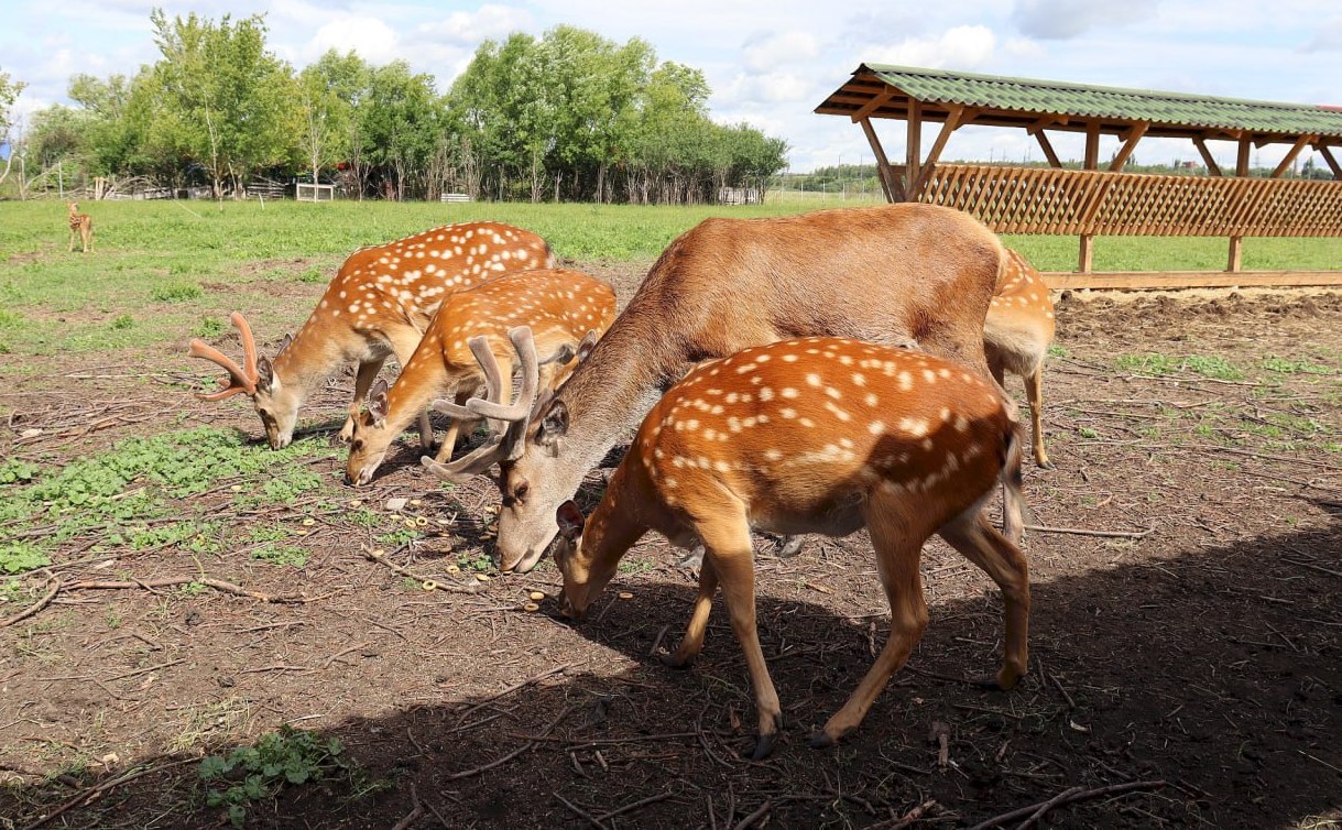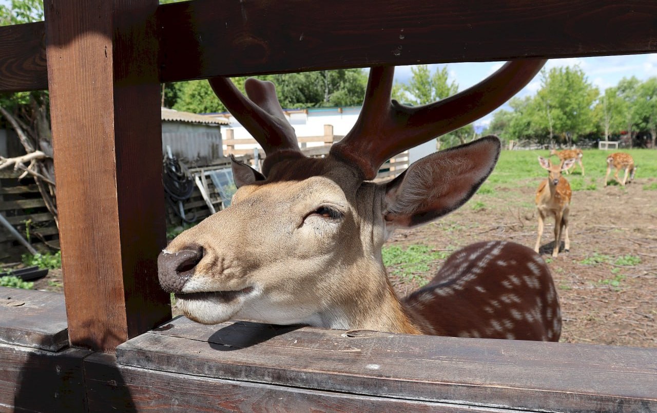 Папа новорожденного - пятнистый олень по имени Олежка, который два года назад жил в контактном мини-зоопарке в Саратове. Но ему там было тесно, и рогатого красавца перевезли в Татищево. На лоне природы Олежка нашел новых друзей и встретил свою любовь - самку Машу. Теперь они стали счастливыми родителями.