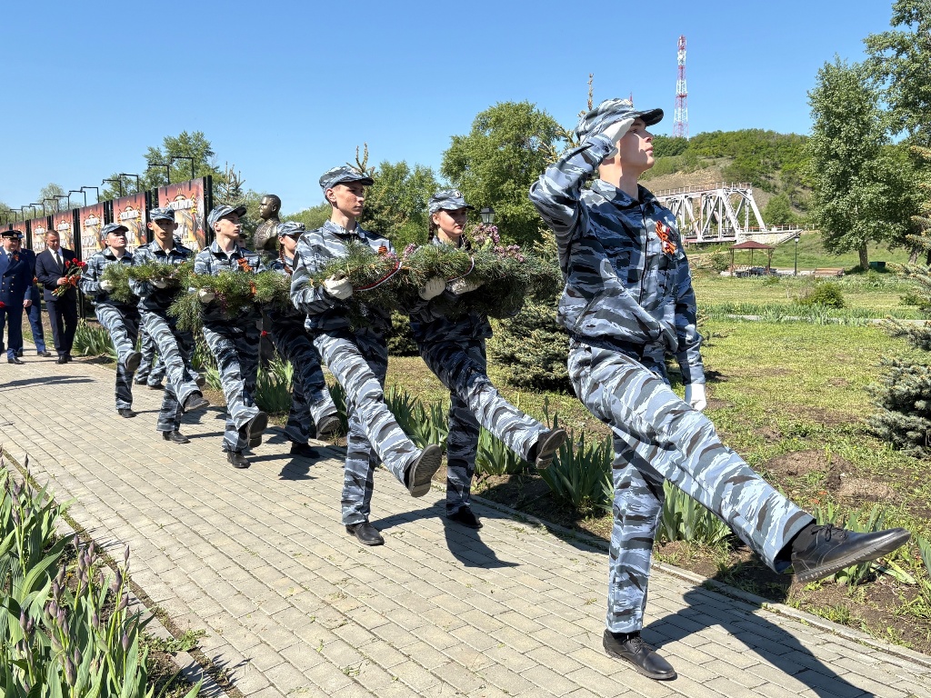 В день празднования юбилея Победы земляки возложили цветы к бюстам Героев. Почетный караул несли юнармейцы школы №2.
