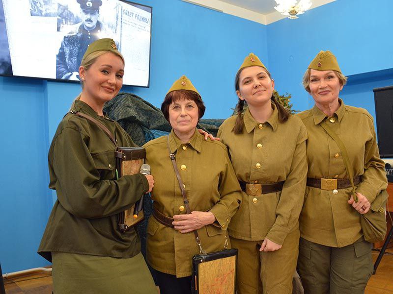 «У наших “ночных ведьм” настоящие планшеты летчиков с картами. У меня самой папа летчик, и во многих семьях, как и в нашей, сохранились подлинные военные вещи тех лет - планшеты, ремни, фуражки. Также в постановке задействован настоящий костюм бойцов СВО, который теперь будет передан на фронт. А сам блиндаж мы соорудили из затеняющей сетки, которую один из наших сотрудников принес с огорода, чем нас очень выручил», - признается автор проекта.